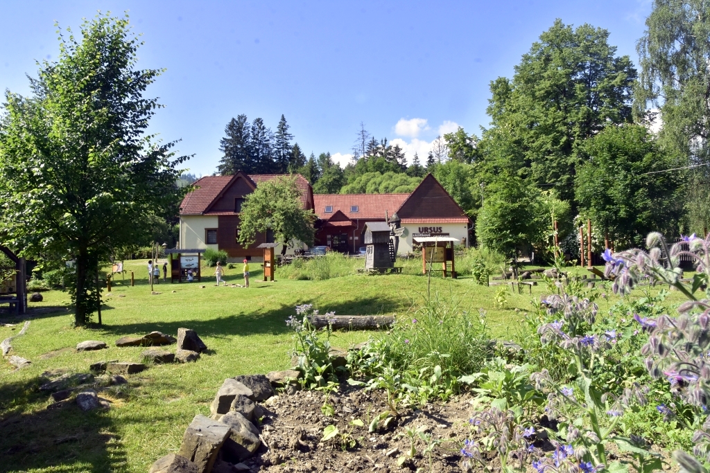 Zahrada URSUS centra – Zelený ráj – je první ukázkovou a certifikovanou přírodní zahradou v Moravskoslezském kraji. Získání této certifikace je podmíněno splněním řady přísných kritérií, která podporují šetrný a udržitelný přístup k přírodě. Zahrada je obhospodařována bez používání pesticidů, lehce rozpustných minerálních hnojiv či rašeliny a nabízí pestrou mozaiku přírodních prvků, jako jsou živé ploty, divoké porosty, vlhká i suchá stanoviště, květiny a kvetoucí trvalky, přirozená louka či listnaté stromy. Důležitou součástí jsou také prvky užitkového hospodaření – kompostování, využívání dešťové vody, mulčování a bylinkové záhony. Z celkových 18 certifikačních kritérií zahrada Zelený ráj splňuje všechna.